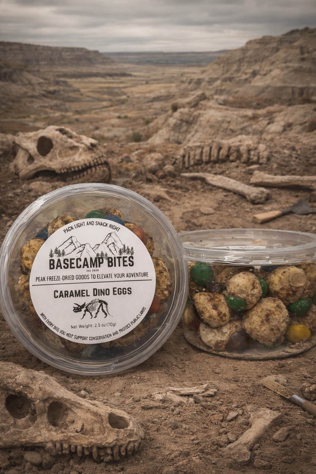 We took caramel-filled chocolate candies and freeze-dried them into crunchy, prehistoric bites that are anything but extinct. Sweet caramel centers, crisp candy shells, and a texture that melts and crunches all at once — it’s a snack discovery worth digging for.