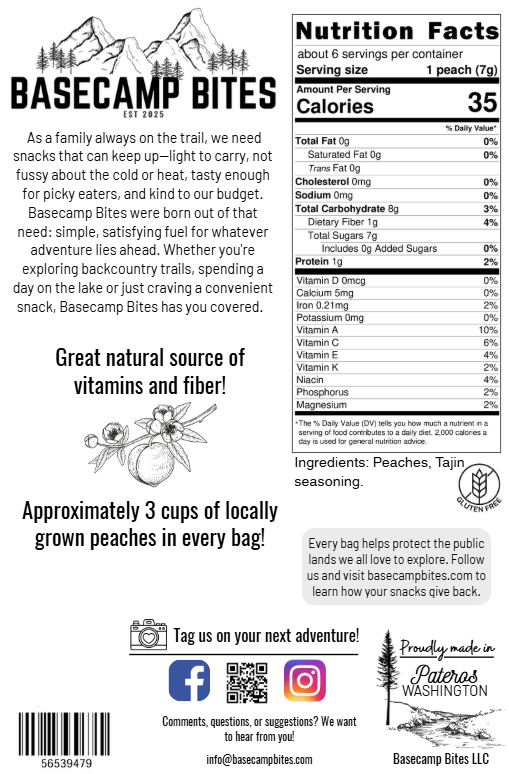 Juicy peaches dusted with Tajín and freeze-dried into light, tangy bites that’ll wake up your taste buds. A little sweet, a little spicy, and 100% addictive.